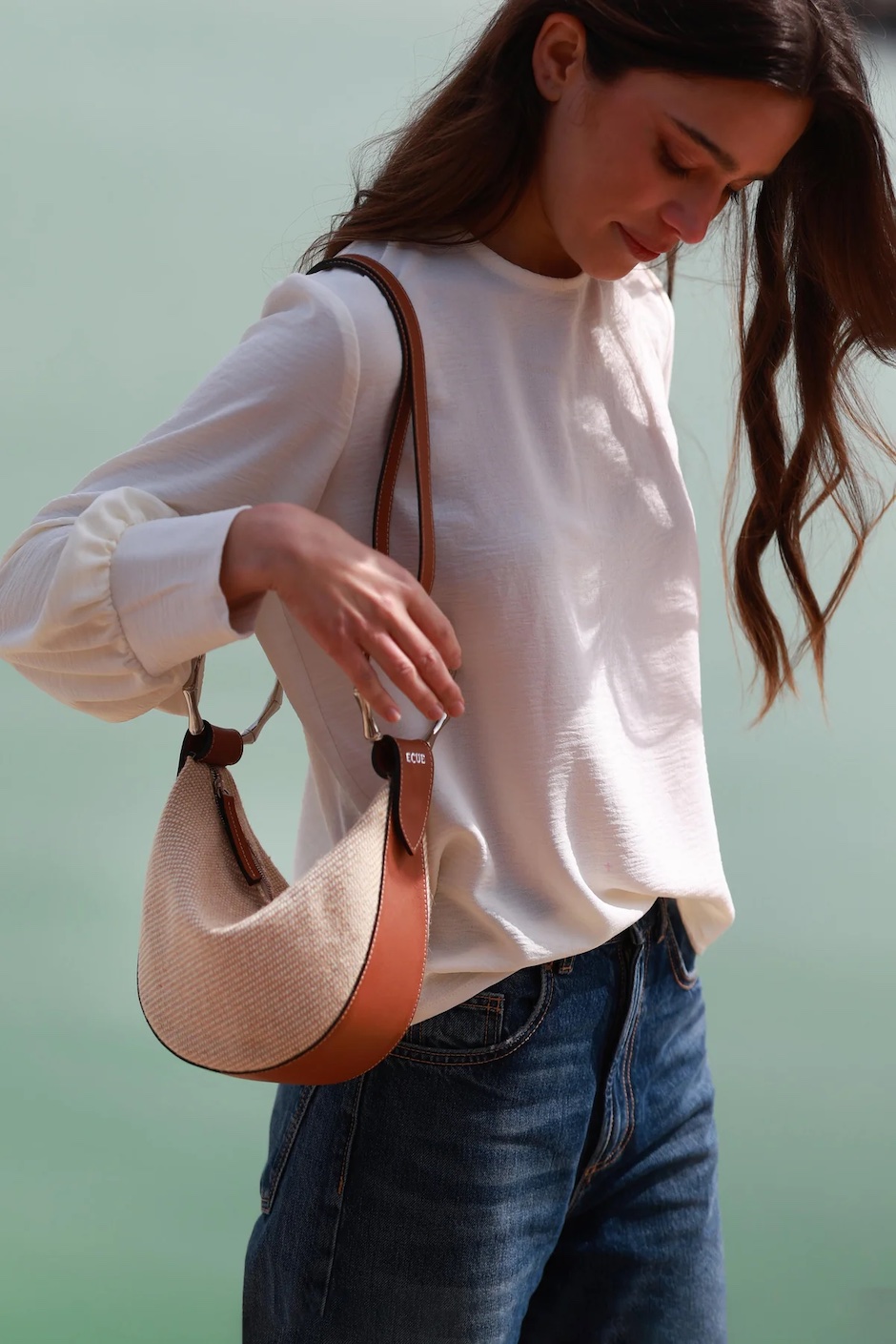 Diseñada pensando en la funcionalidad sin renunciar a la estética, su tamaño permite llevar cómodamente el móvil y los imprescindibles del día a día, convirtiéndola en una opción práctica a pesar de su apariencia compacta.