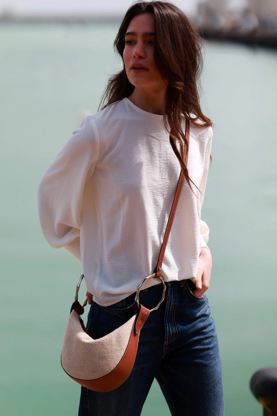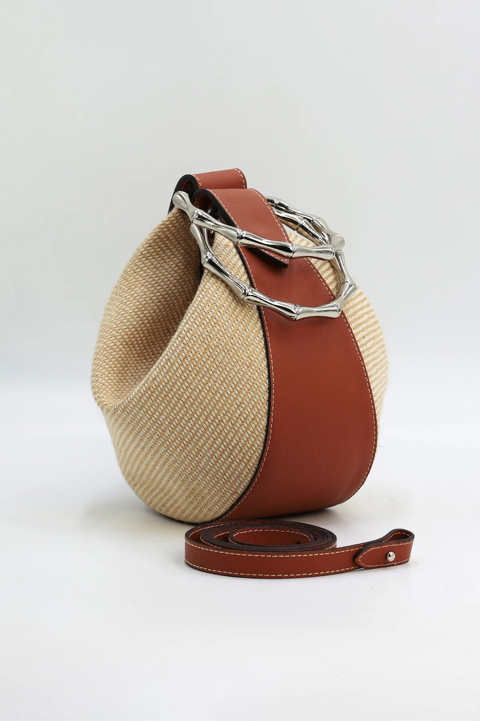 Una pieza única que fusiona tradición artesanal y elegancia contemporánea. Esta limosnera está elaborada a mano en España, combinando espiga natural tejida con cuero de primera calidad, seleccionado por su tacto, resistencia y belleza con el paso del tiempo.