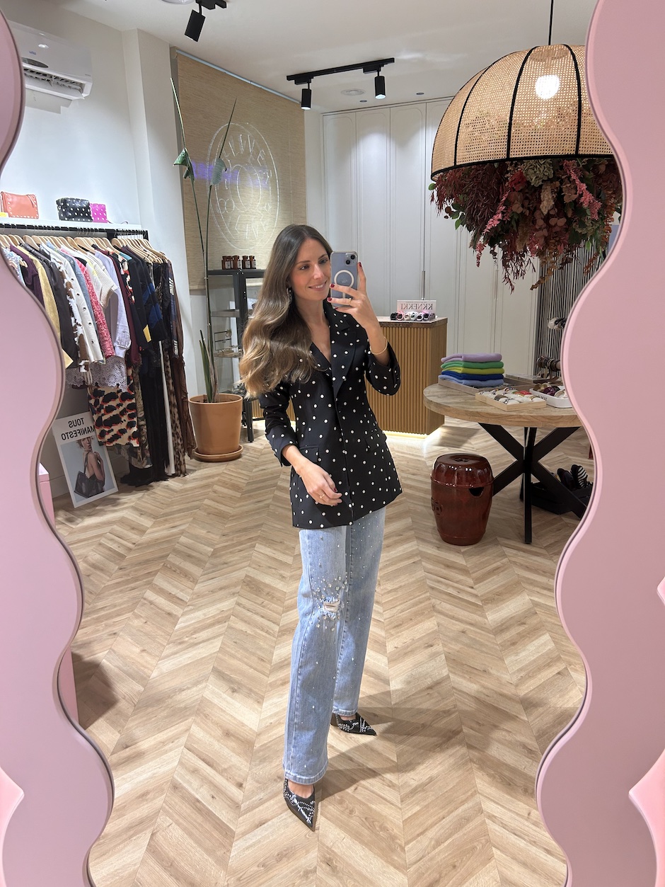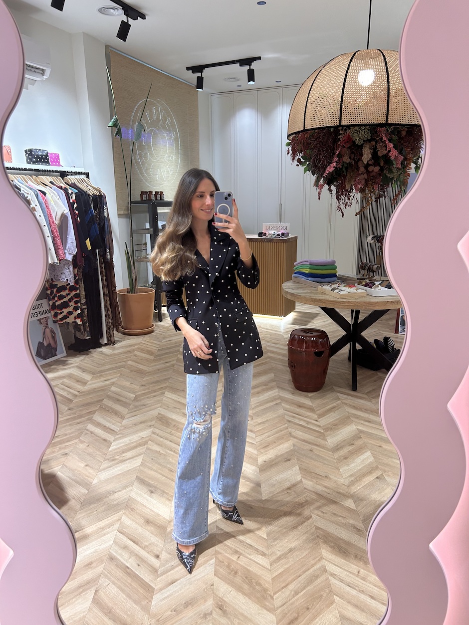 La modelo mide 1,65 cm. Lleva talla S/36.
