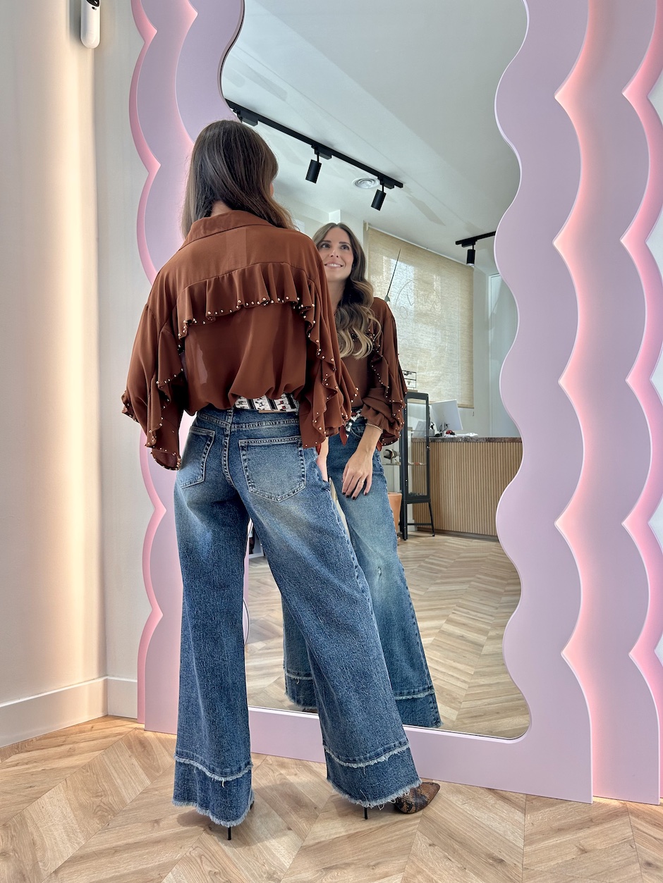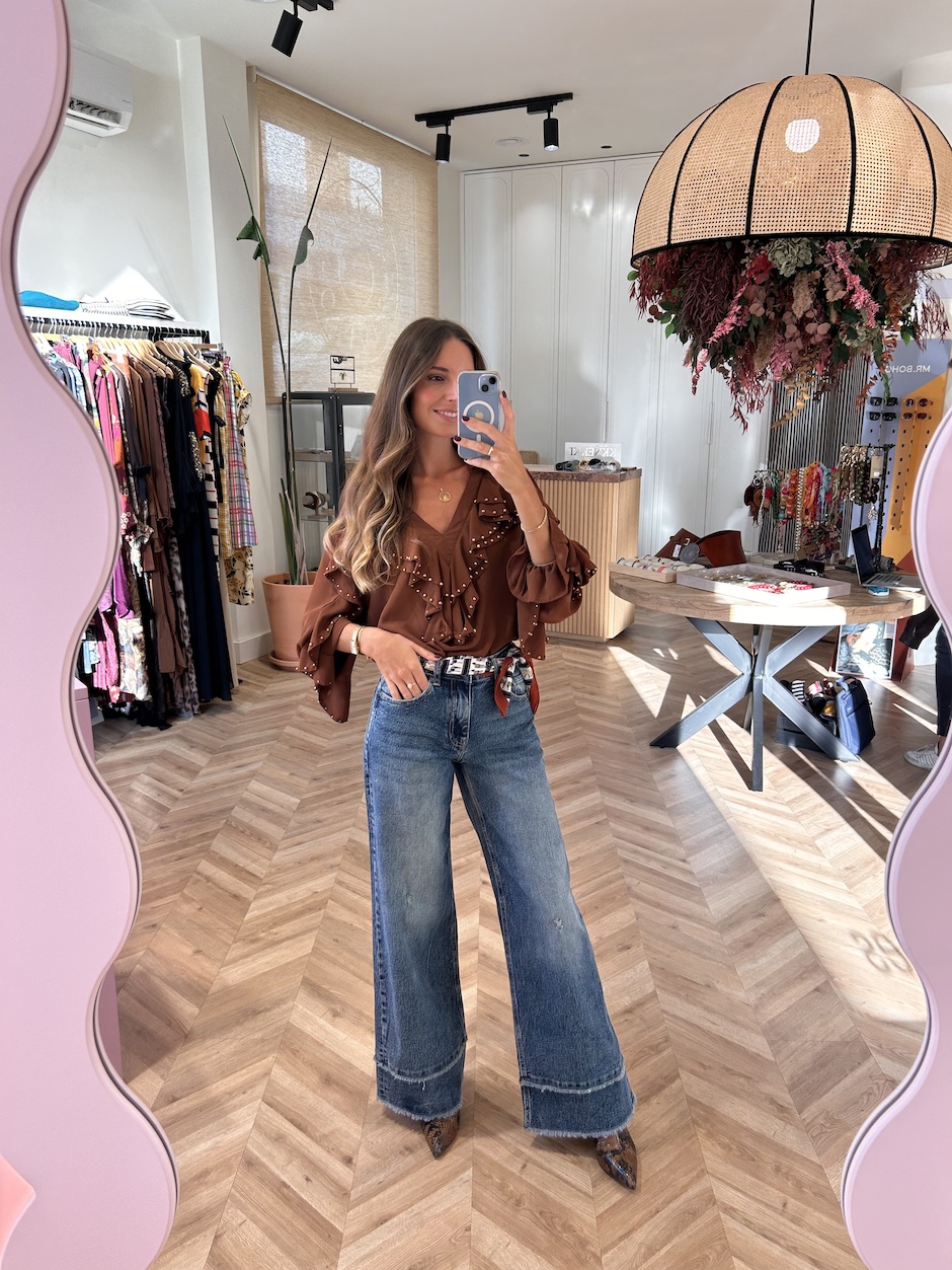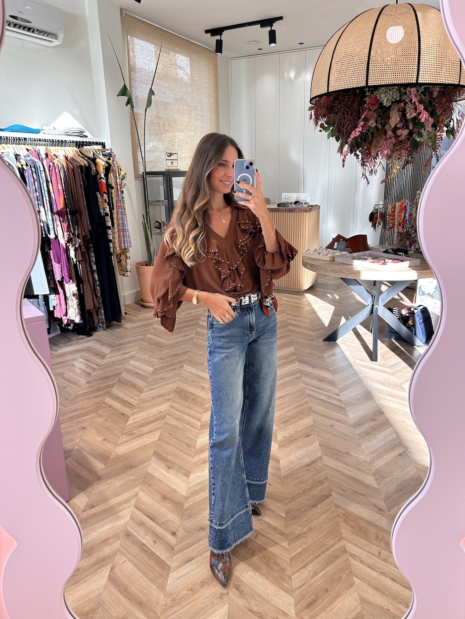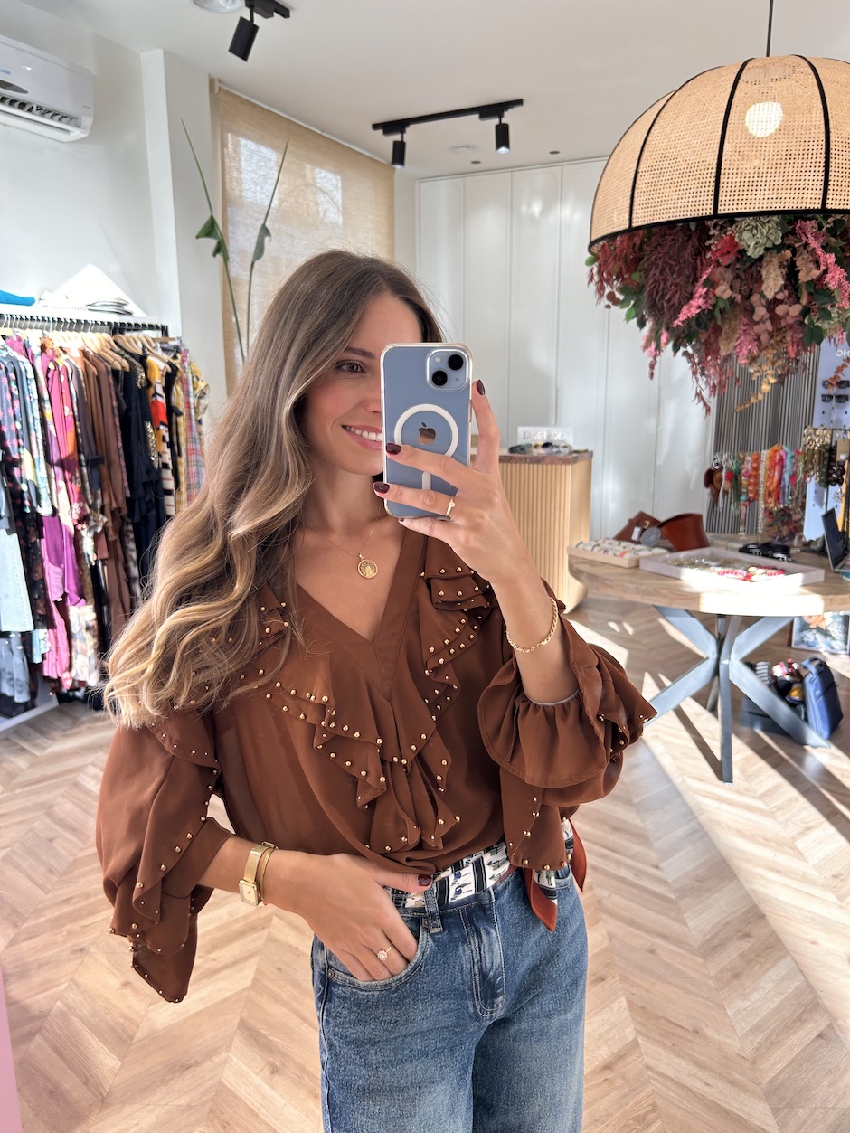 Blusa Chorreras Detalle Tachas Avellana - Oliver Shopping