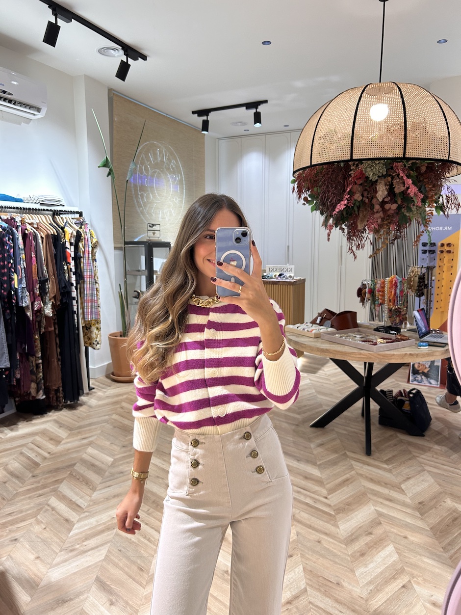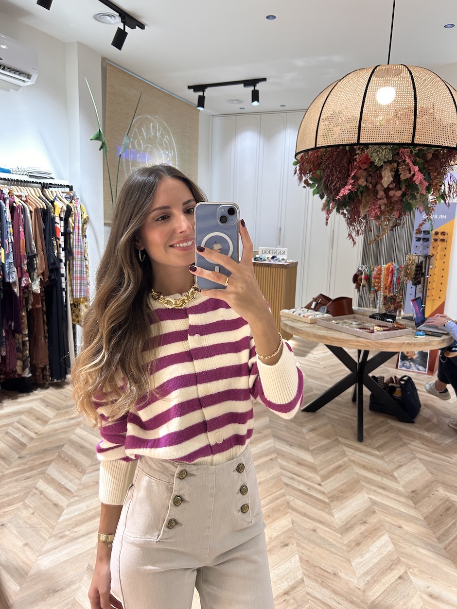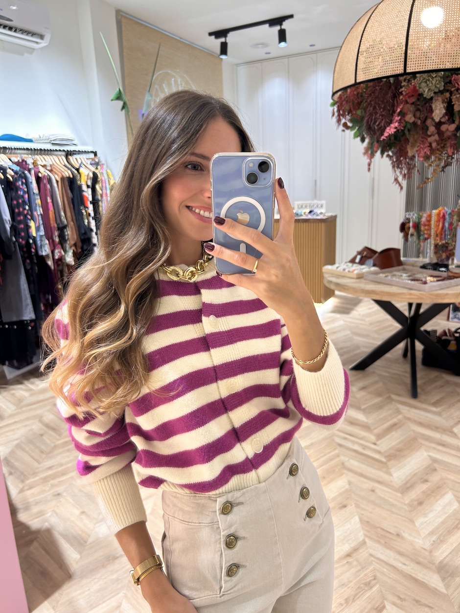 Cárdigan Rayas Magenta Y Marfil - Oliver Shopping
