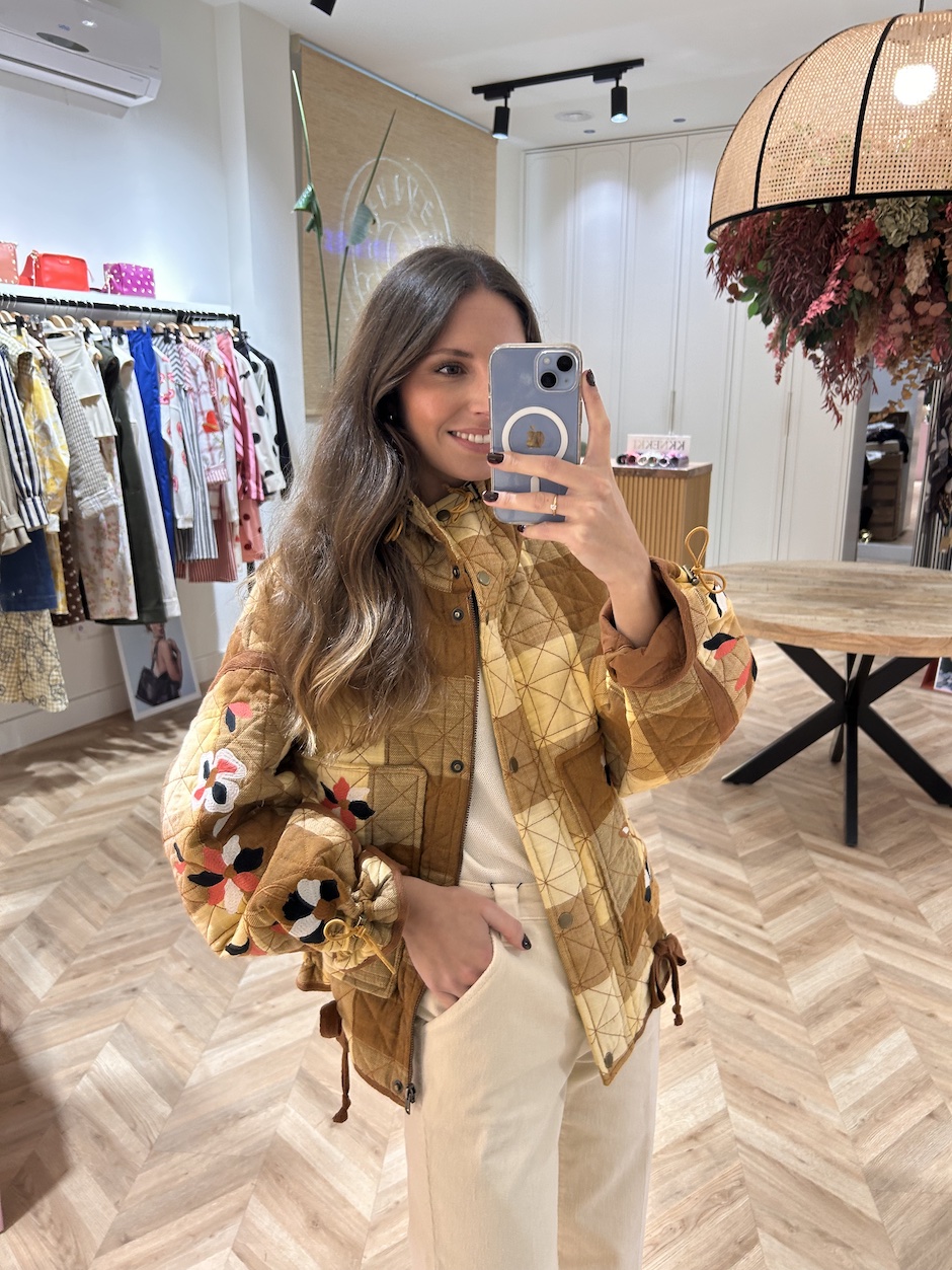Cazadora Acolchada Flores Bordadas - Oliver Shopping