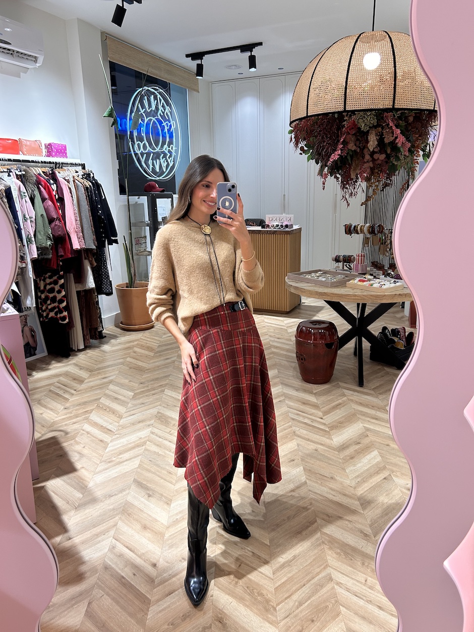 La modelo mide 1,65 cm. Lleva talla SM.