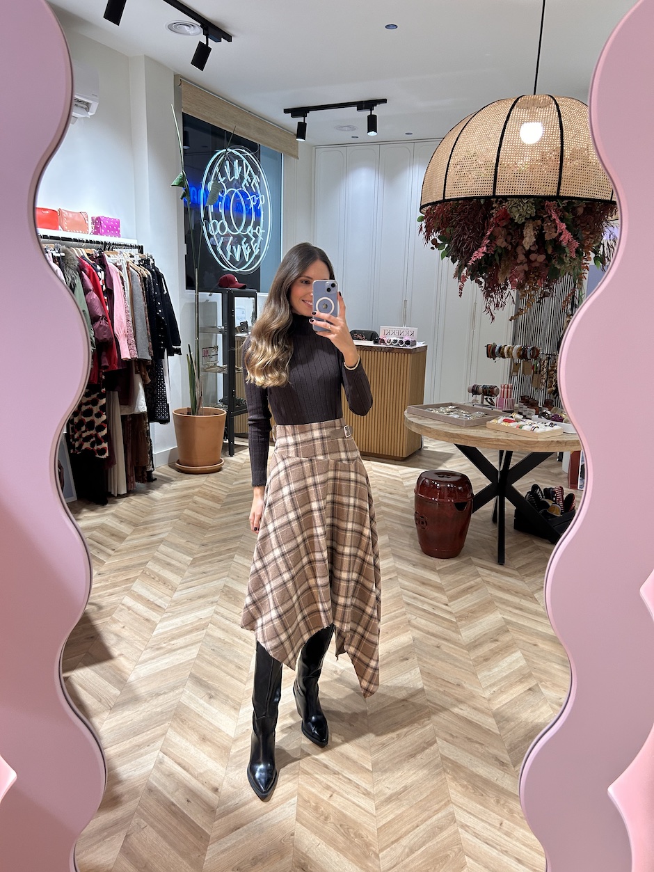 Falda Asimétrica Tartán Topo - Oliver Shopping
