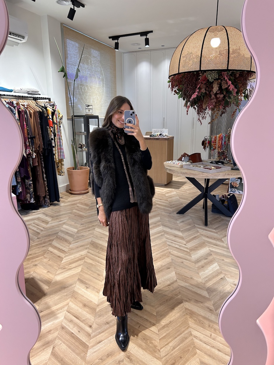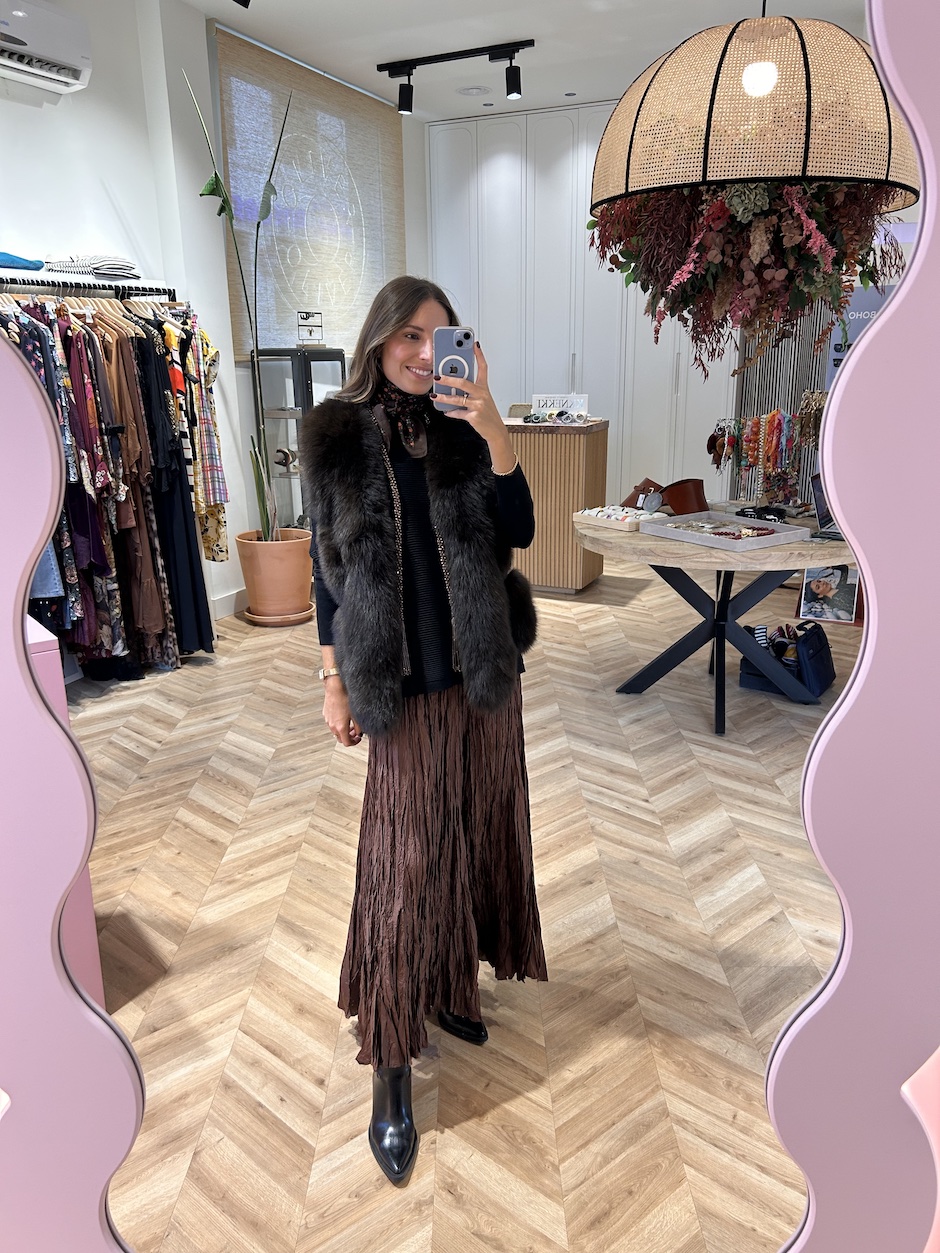 Falda Larga Plisada Chocolate - Oliver Shopping