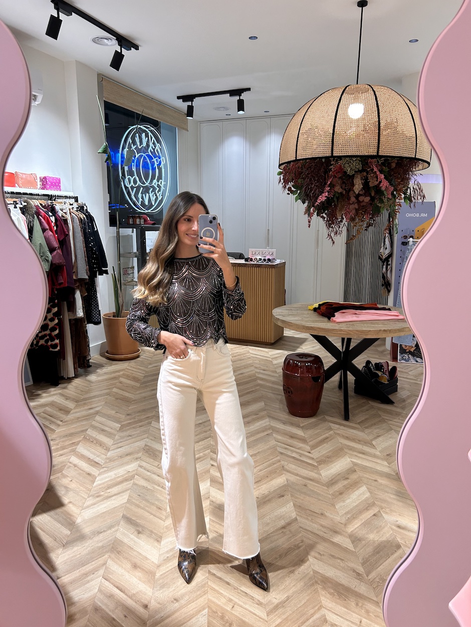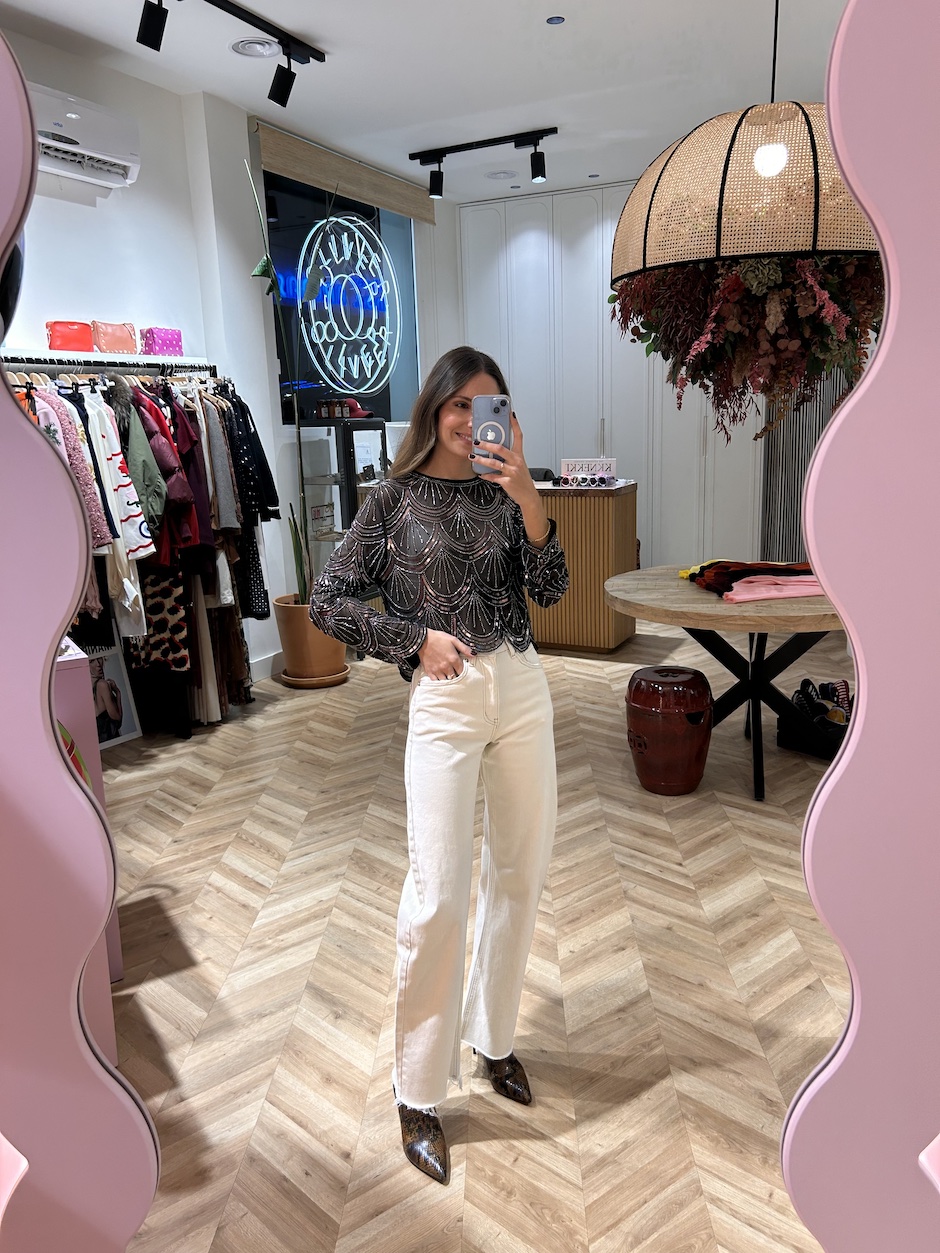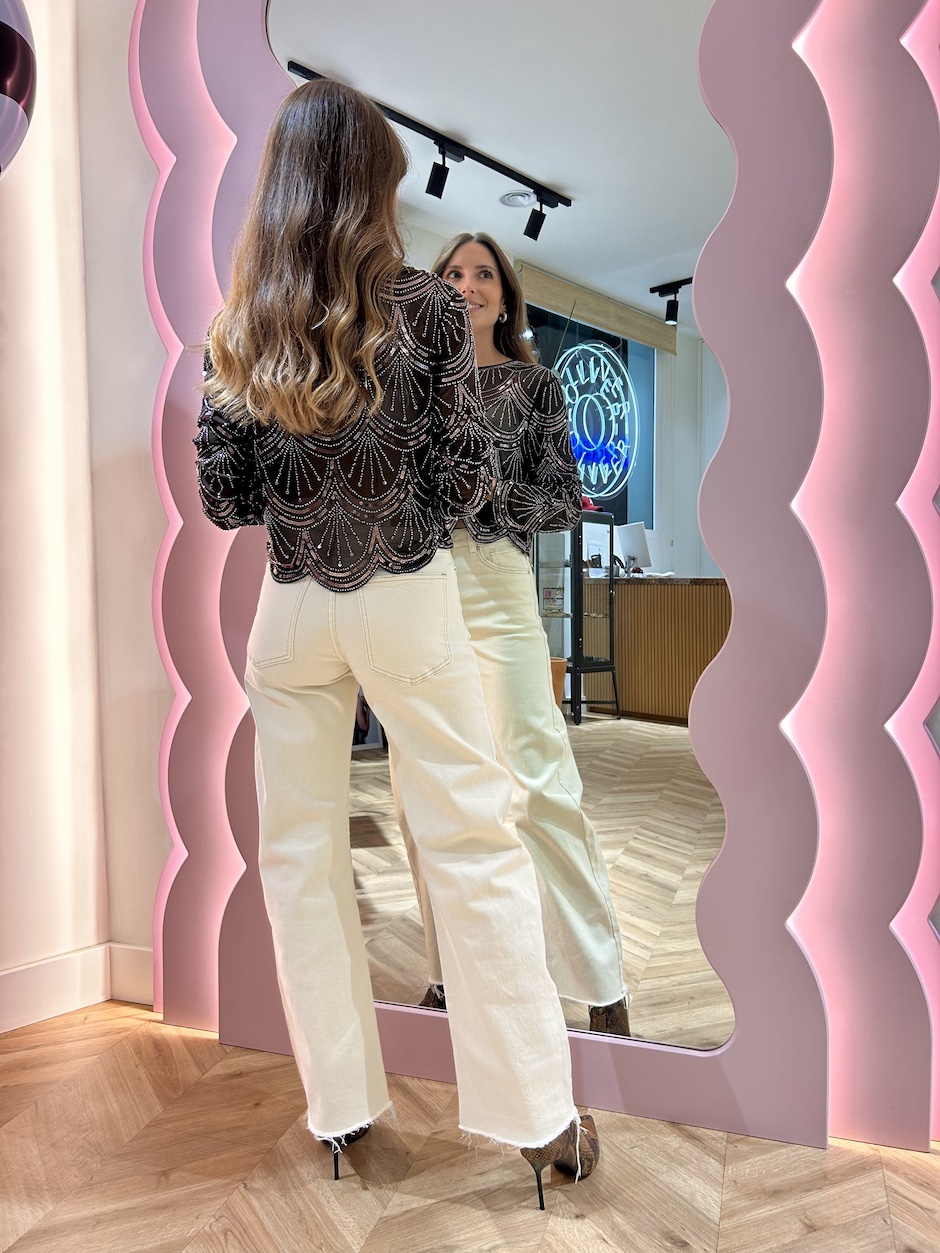 La modelo mide 1,65 cm. Lleva talla XS/34.