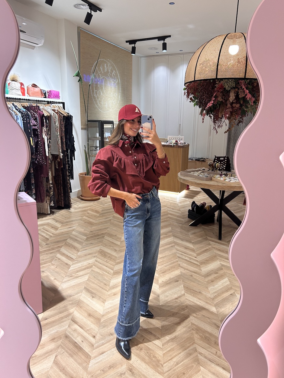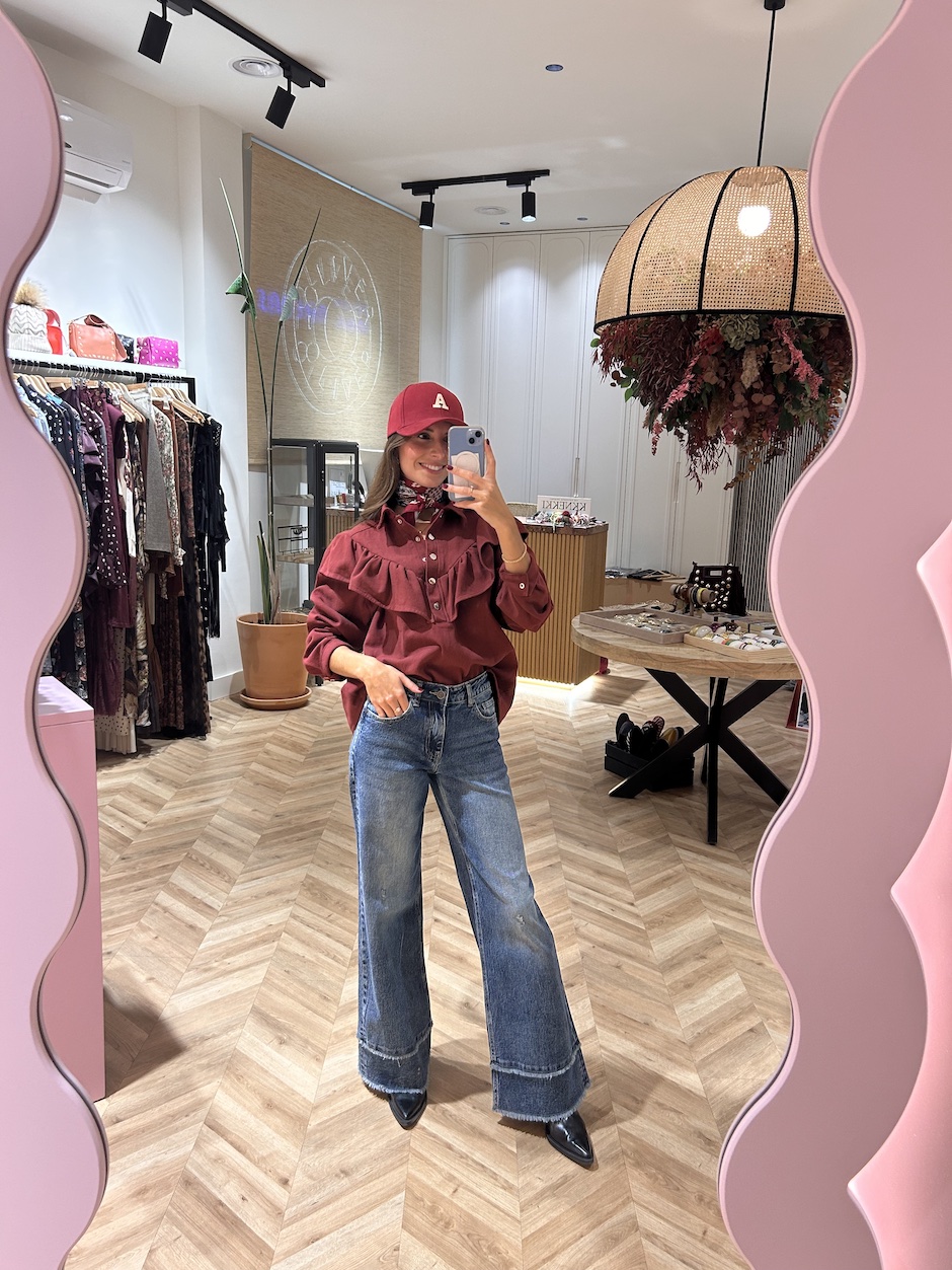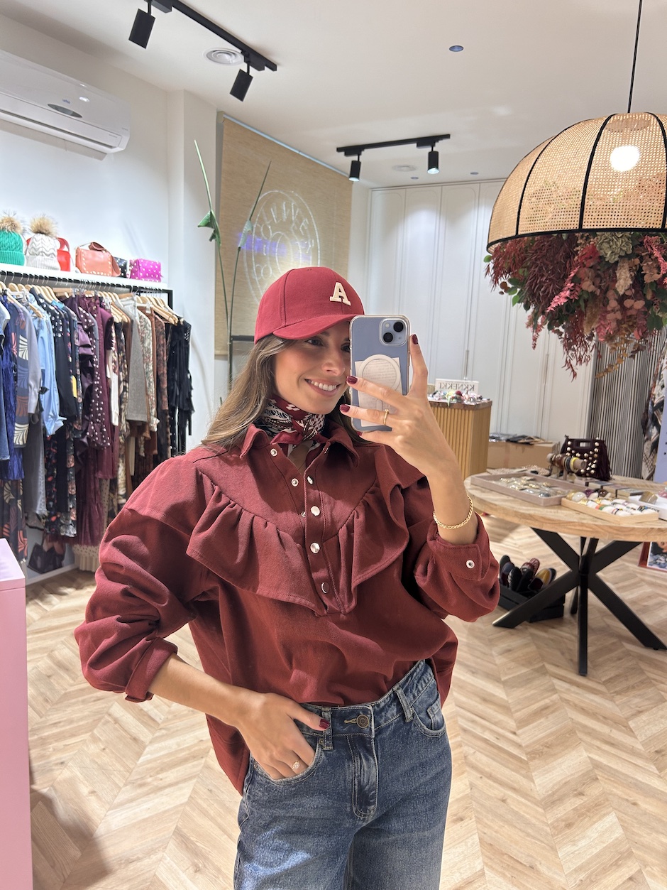 Sobrecamisa vaquera con cuello solapa y manga larga acabada en puño con cierre de clip. Cierre en el pecho con botones de clip. Detalle de volante en delantero.