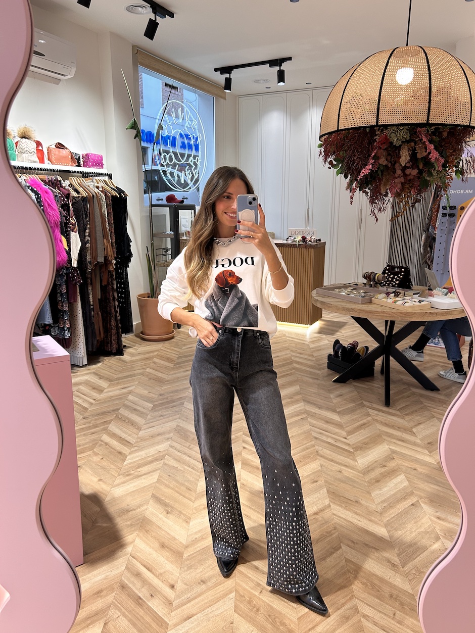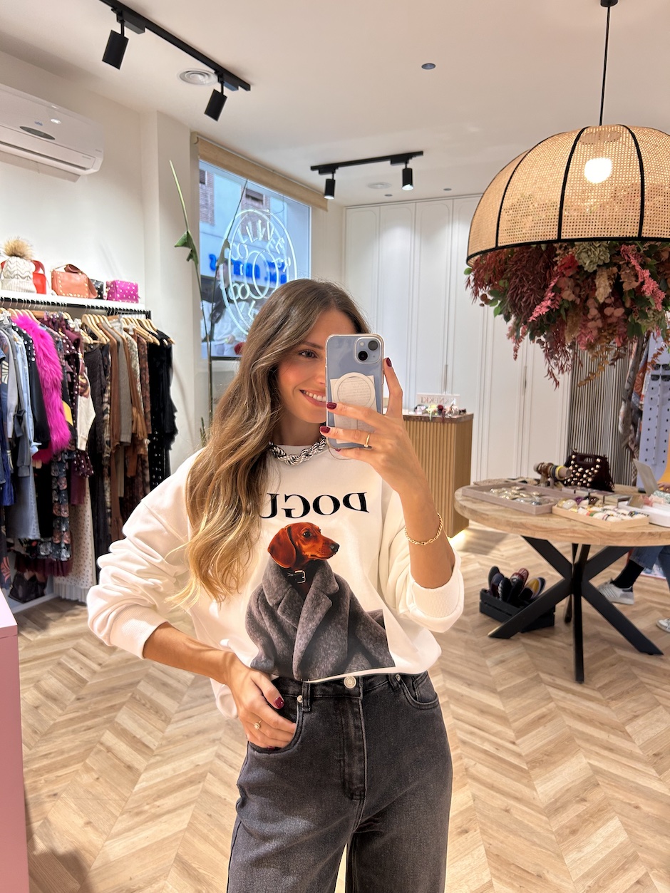 Sudadera con cuello redondo rib y manga larga acabada en puño rib. Detalle de serigrafía en frontal. Bajo con elástico rib.
