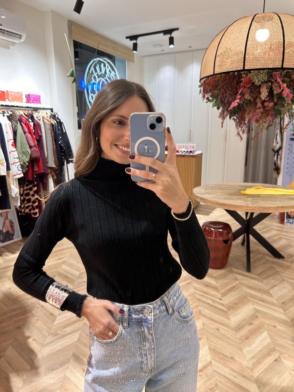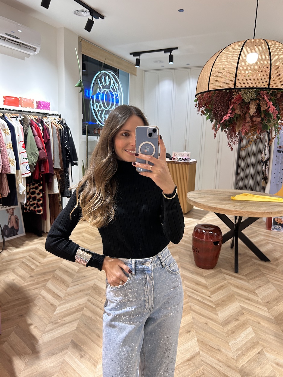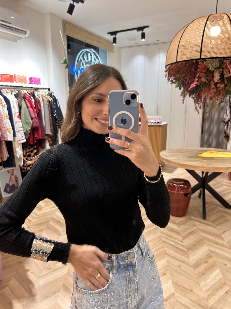 Suéter Canalé Ribete Pelo Negro - Oliver Shopping