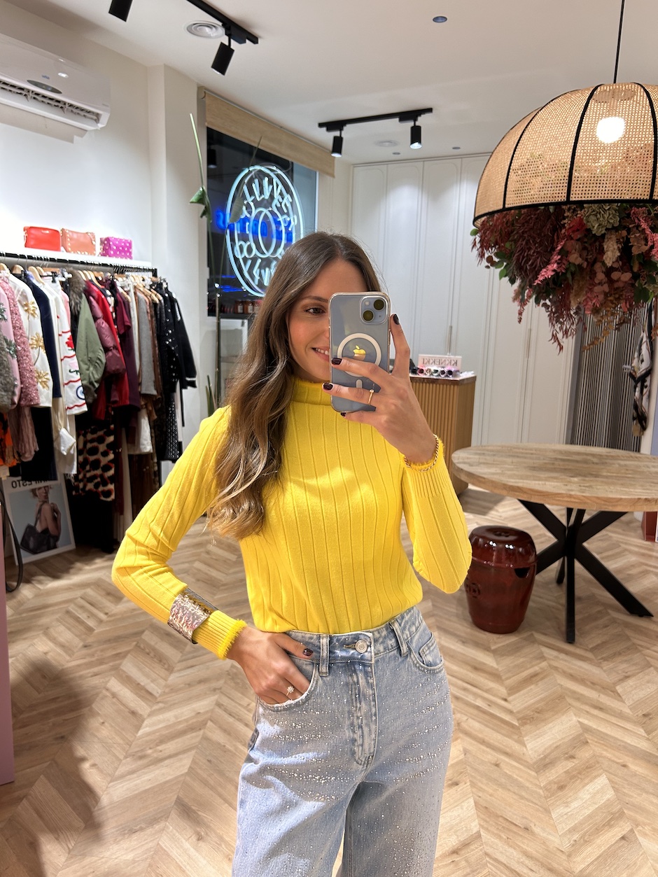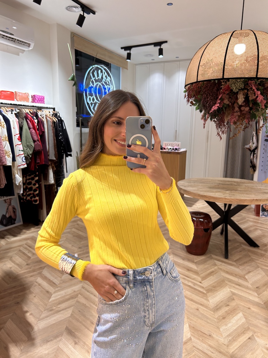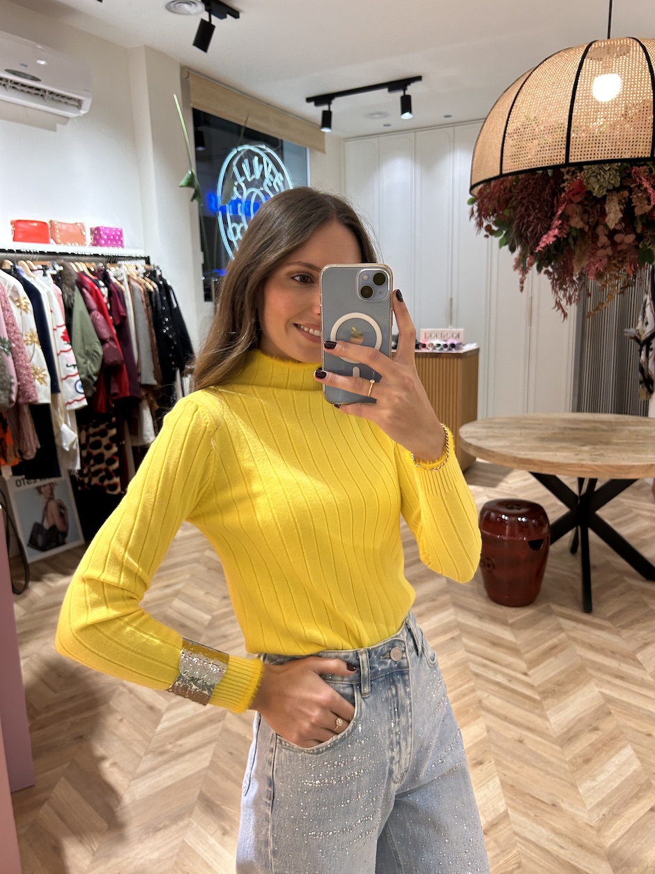 Suéter Canalé Ribete Pelo Amarillo