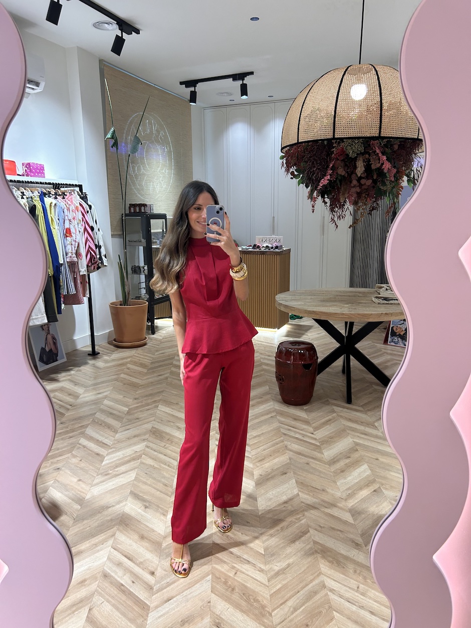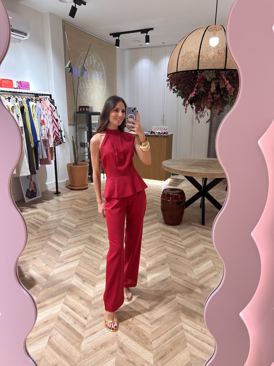 Pantalón sastre de tiro medio y pernera recta. Cierre en delantero con cremallera y botón. Bolsillos en laterales y bolsillos de solapa en espalda.
